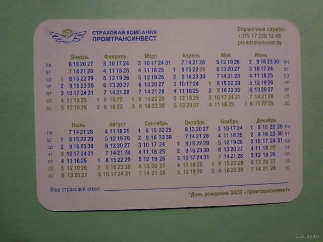 Календарик 2014 г. ПромТрансИнвест. Страхование от болезней...