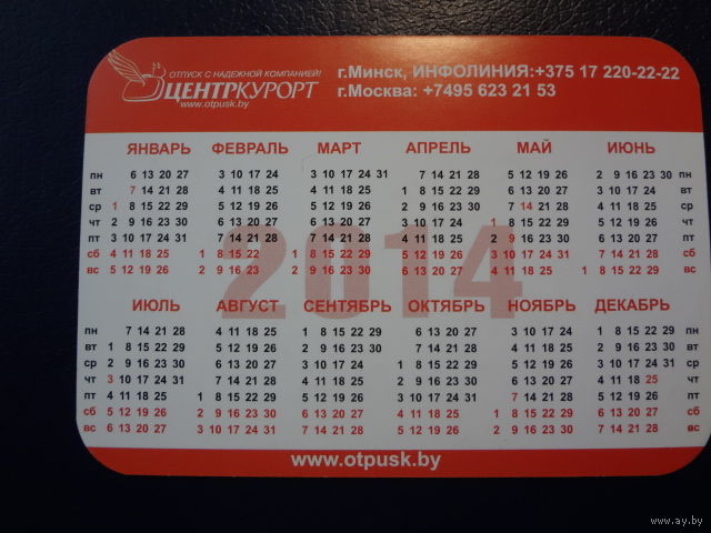 Календарик 2014 г. Санатории Беларуси с ЦентрКурорт.