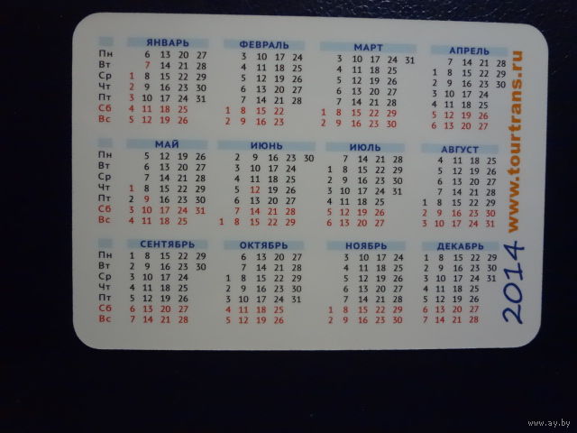 Календарик 2014 г. ТурТрансВояж. Туры с отдыхом на озерах.