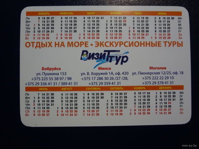 Календарик 2014 г. ВизиТтур. Отдых на море. Экскурсионные туры.