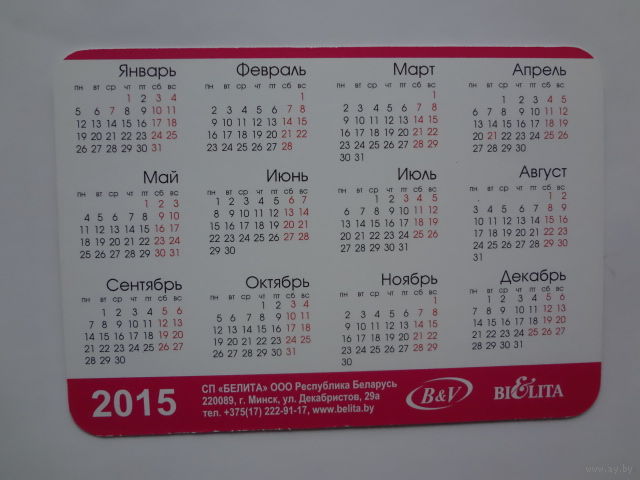 Календарик 2015 г. Белита. Активная жизнь - живые эмоции!
