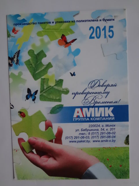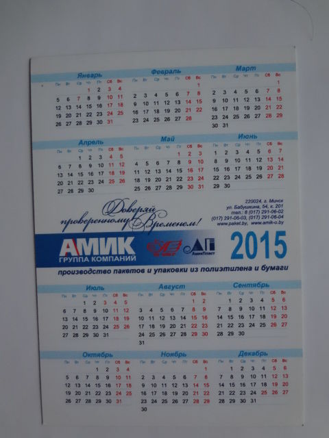 Календарик 2015 г. Группа компаний АМИК. Доверяй проверенному Временем!