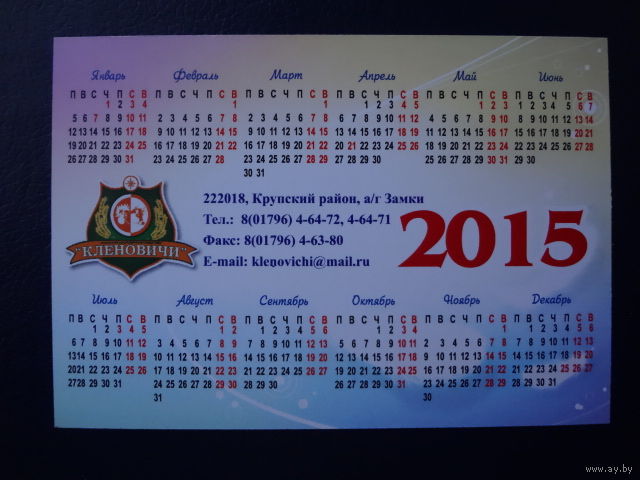 Календарик 2015 г. Кленовичи. (а/г Замки).