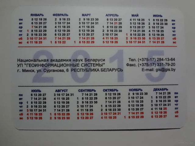 Календарик 2015 г. Национальная Академия наук Беларуси. Геоинформационные системы.