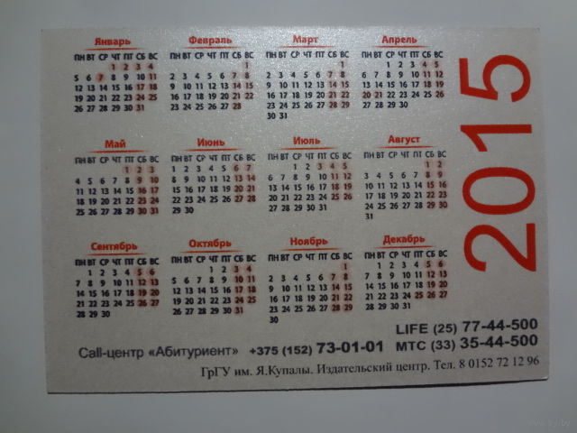 Календарик 2015 г. Поступай правильно - поступай в ГрГУ.