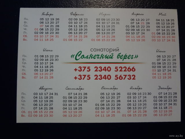 Календарик 2015 г. Санаторий Солнечный берег.