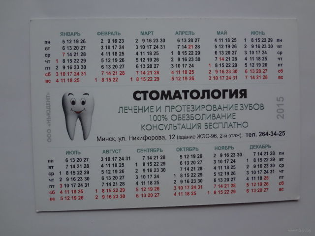 Календарик 2015 г. Стоматология.