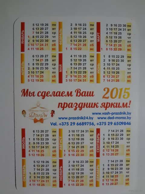 Календарик 2015 г. ТМ Дрозды. Мы сделаем Ваш праздник ярким!