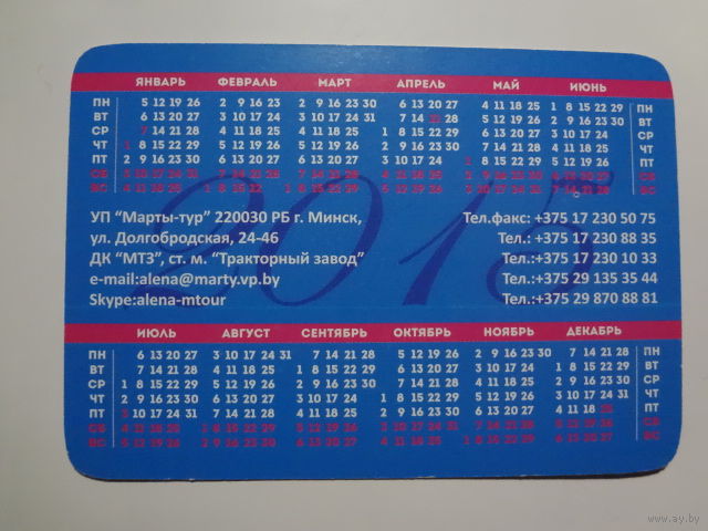 Календарик 2015 г. Туристическая фирма Марты-тур.