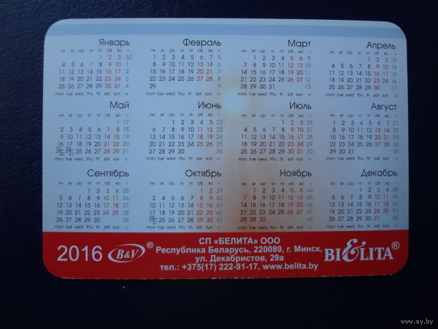 Календарик 2016 г. Белита. Красивая кожа - точный результат!