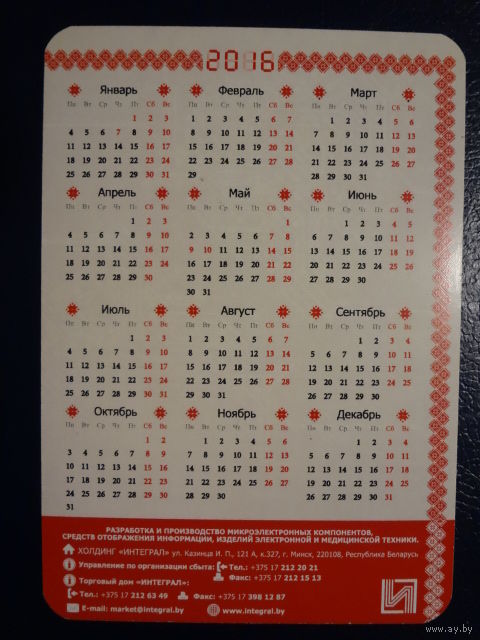 Календарик 2016 г. Интеграл. Традиции высоких технологий.