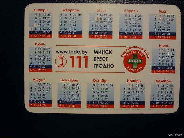 Календарик 2016 г. ЛОДЭ. Гарантия качества.