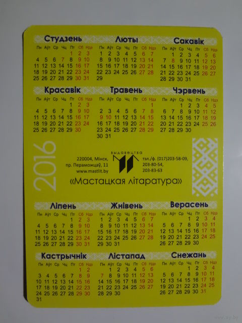 Календарик 2016 г. Мастацкая літаратура. Владимир Прокопцов. Неудержимая квадрига жизни.
