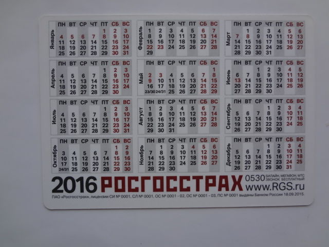 Календарик 2016 г. Росгосстрах кино. Берегите вашу любовь.