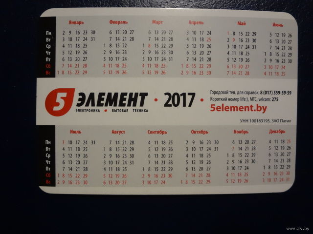 Календарик 2017 г. 5 элемент. Всегда на вашей стороне.