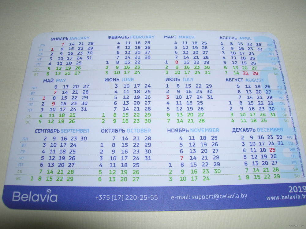 Календарик 2019 год Белавиа Птица Зарянка Великобритания