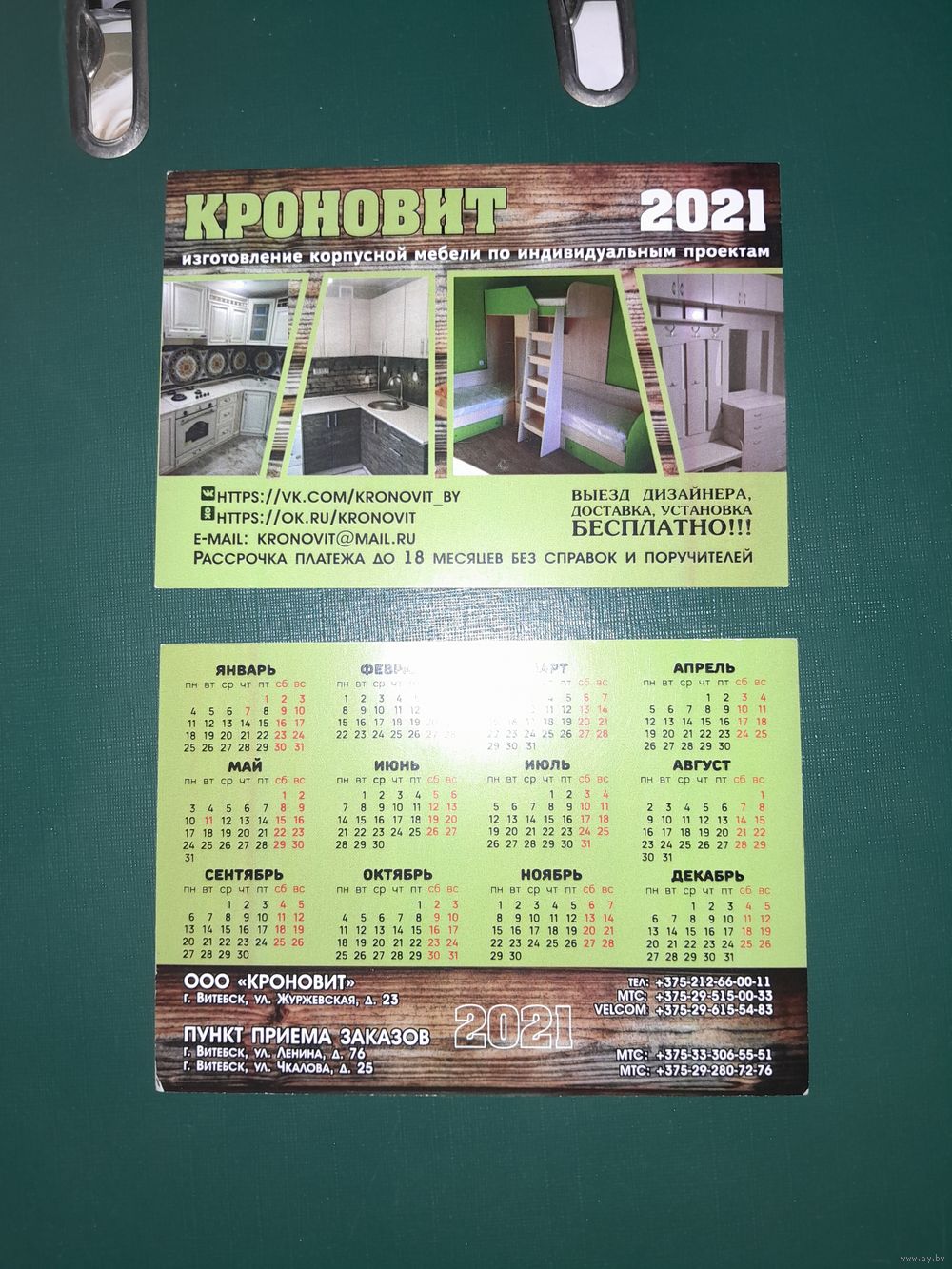 Календарик 2021 Магазин Кроновит г.Витебск