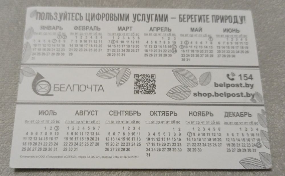 Календарик. 2022. Белпочта. Передача в Витебске возле ратуши. Пересылка в другой город за счёт покупателя по тарифам Белпочты либо Европочты после 100% предоплаты.
