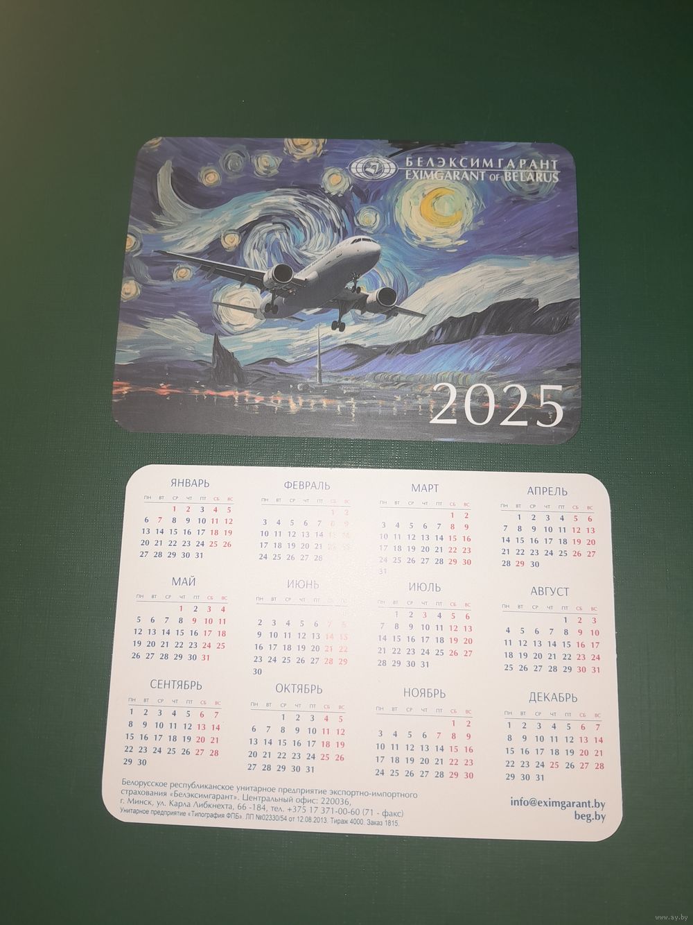 Календарик 2025 Белэксимгарант 2