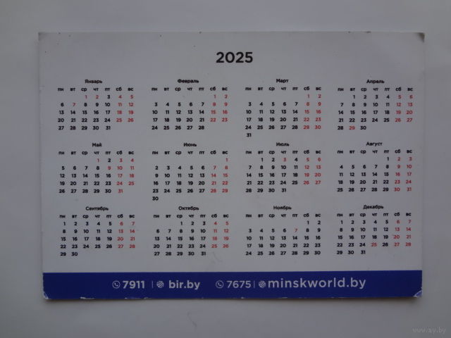 Календарик 2025 г. Многофункциональный комплекс MINSK WORLD.
