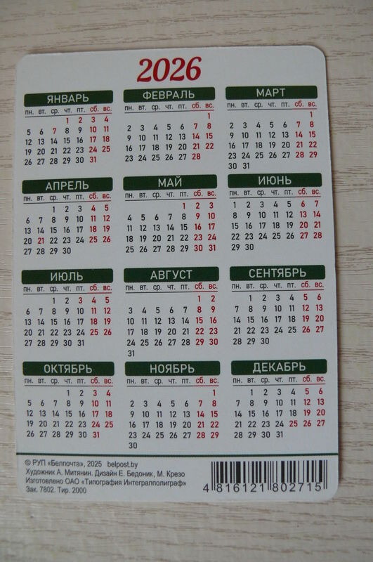 Календарик, 2026, Перелеска благородна, изд. "Белпочта".