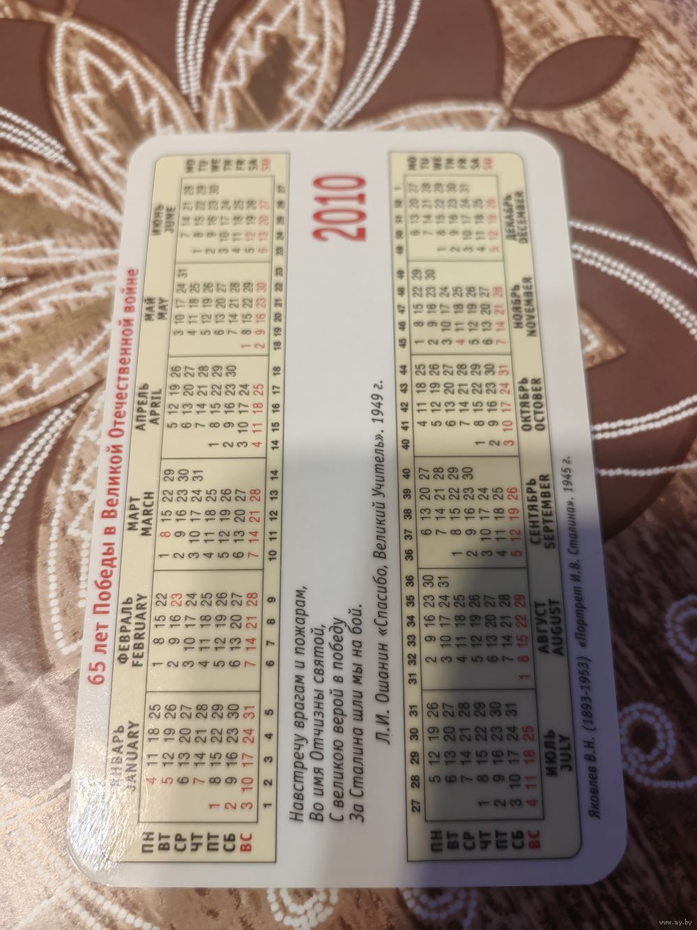 Календарик,65 лет Победы,Сталин,пластик