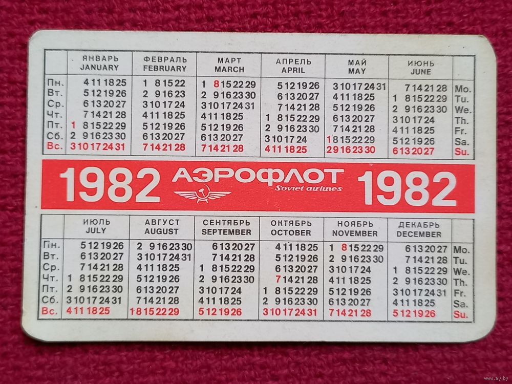 Календарик Аэрофлот. 1982 г.