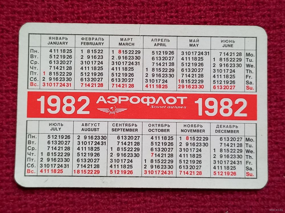 Календарик Аэрофлот. 1982 г.