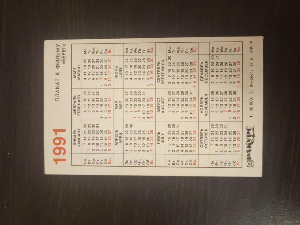 Календарик,афиша,1991