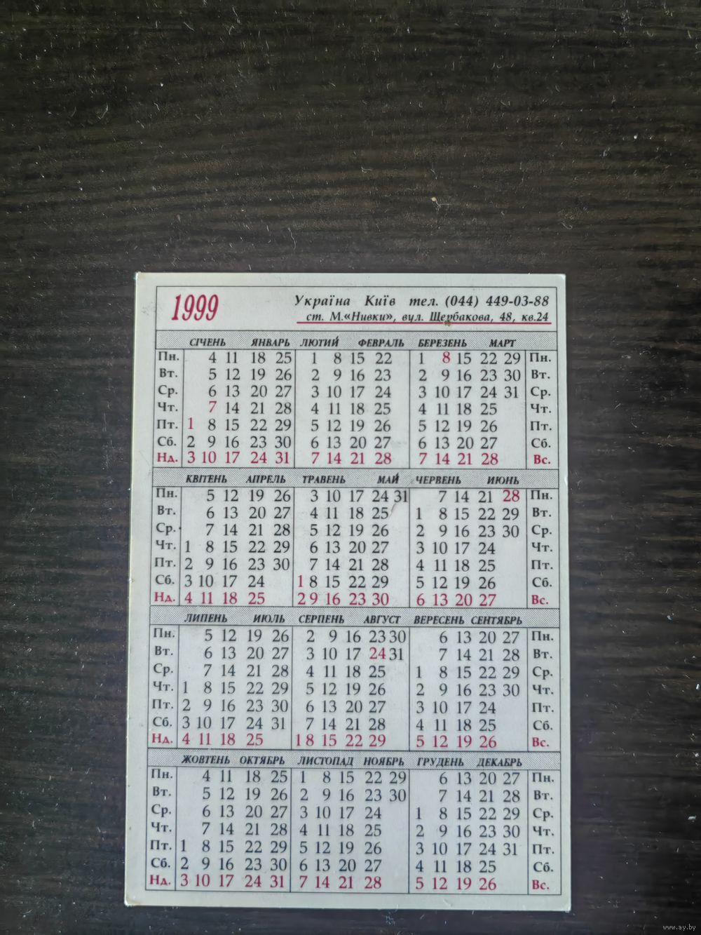 Календарик,агата кристи,1999