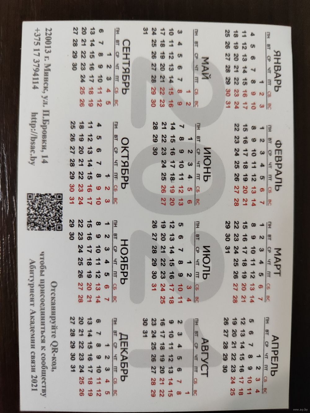 Календарик Академия Связи РБ 2021г