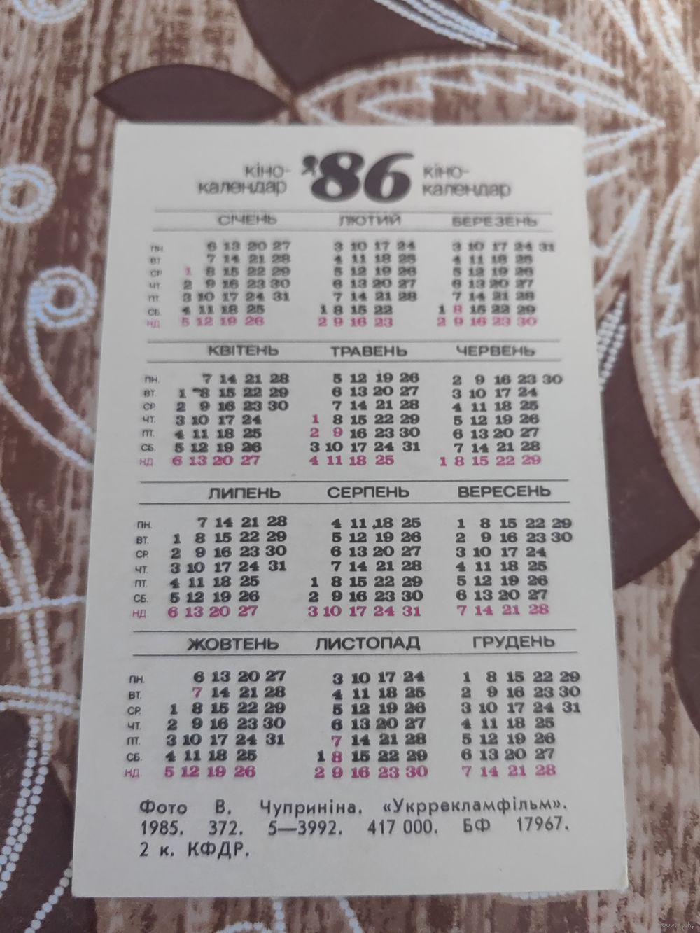 Календарик,артисты,1986