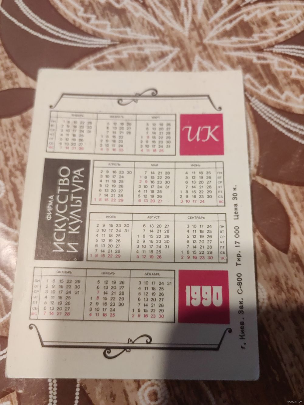 Календарик,артисты,1990