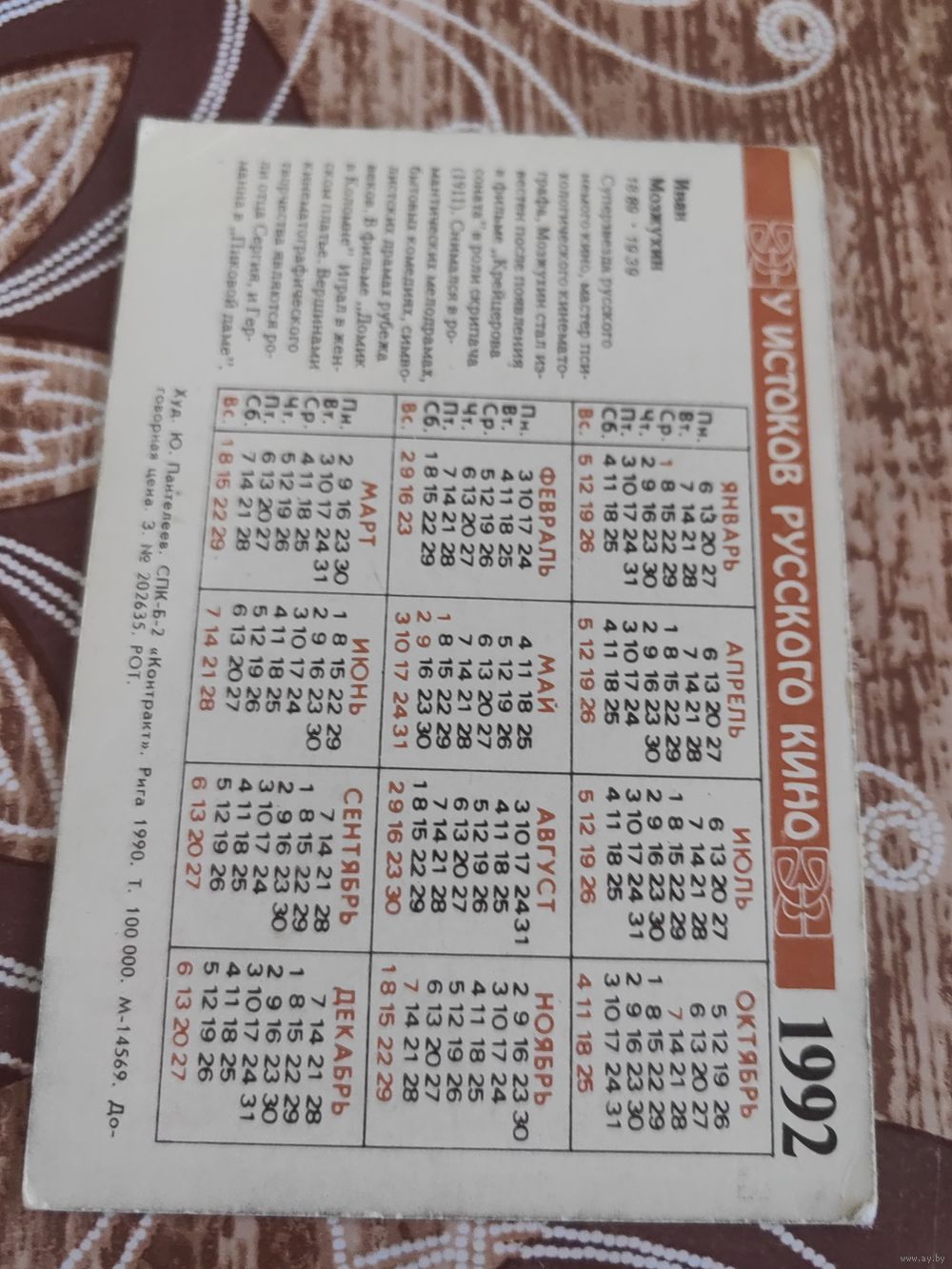 Календарик,артисты,1992
