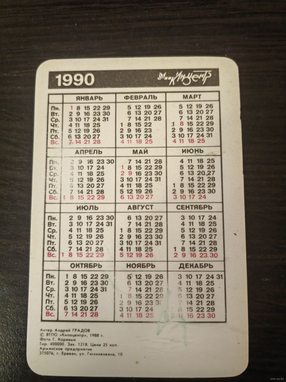 Календарик,артисты,Градов,пластик,1990