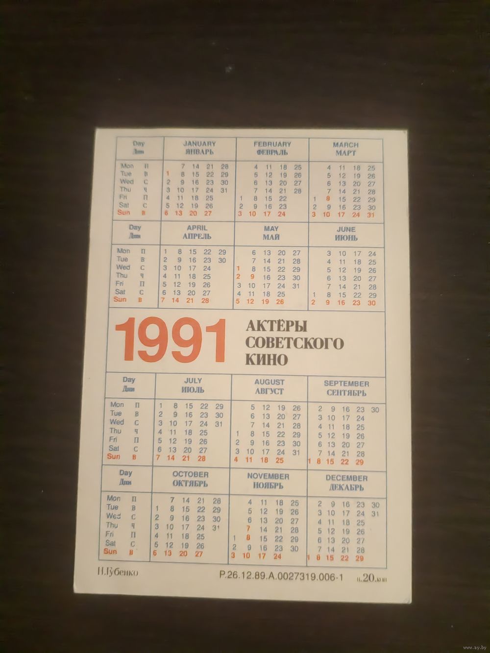 Календарик,артисты,Губенко