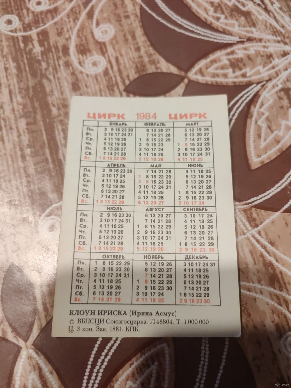 Календарик,артисты,Ириска,1984