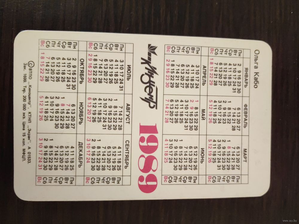 Календарик,артисты кабо,1989