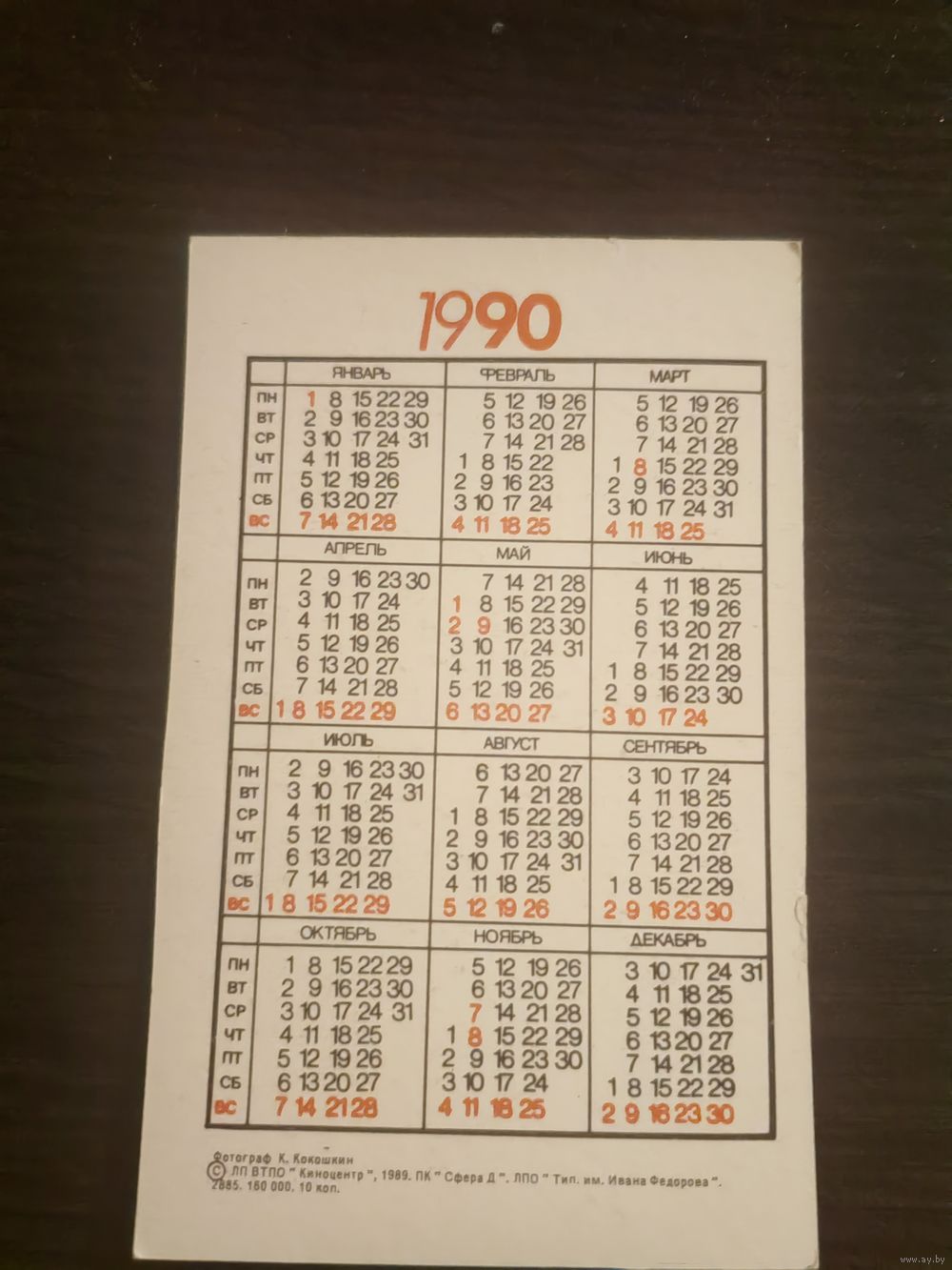 Календарик,артисты,Кабо,1990