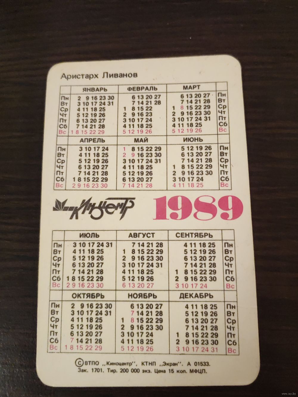 Календарик,артисты,ливанов,1989