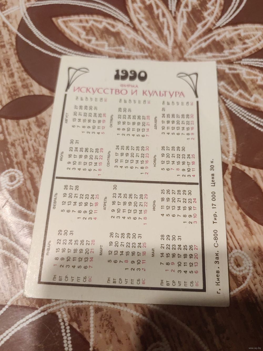 Календарик,артисты,рок,1990