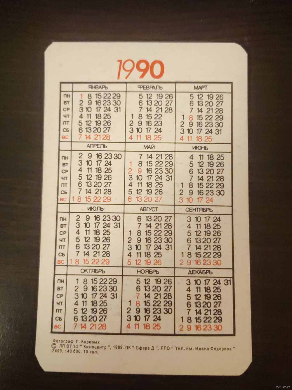 Календарик,артисты,Сотникова,1990