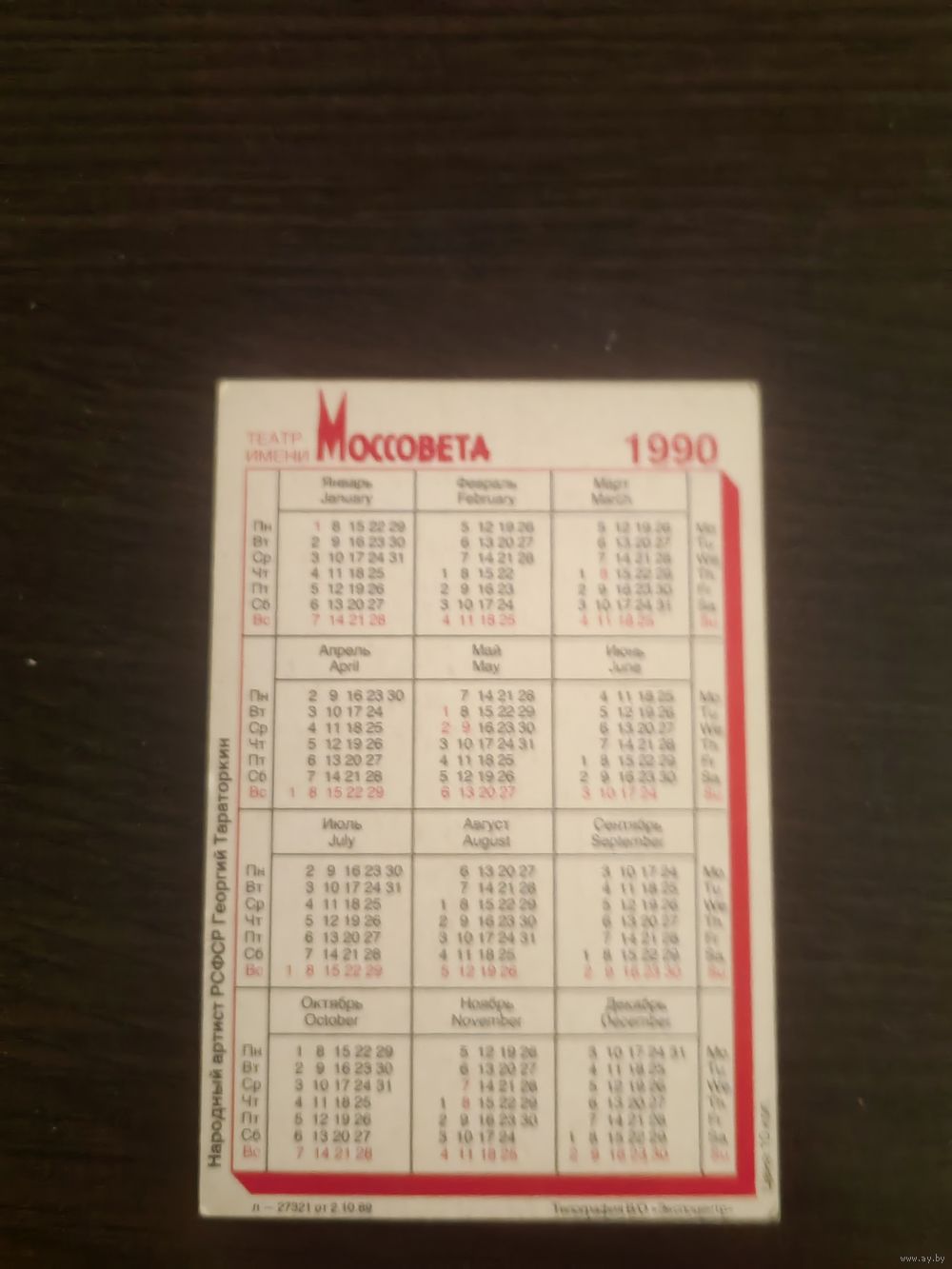 Календарик,артисты,Тараторкин