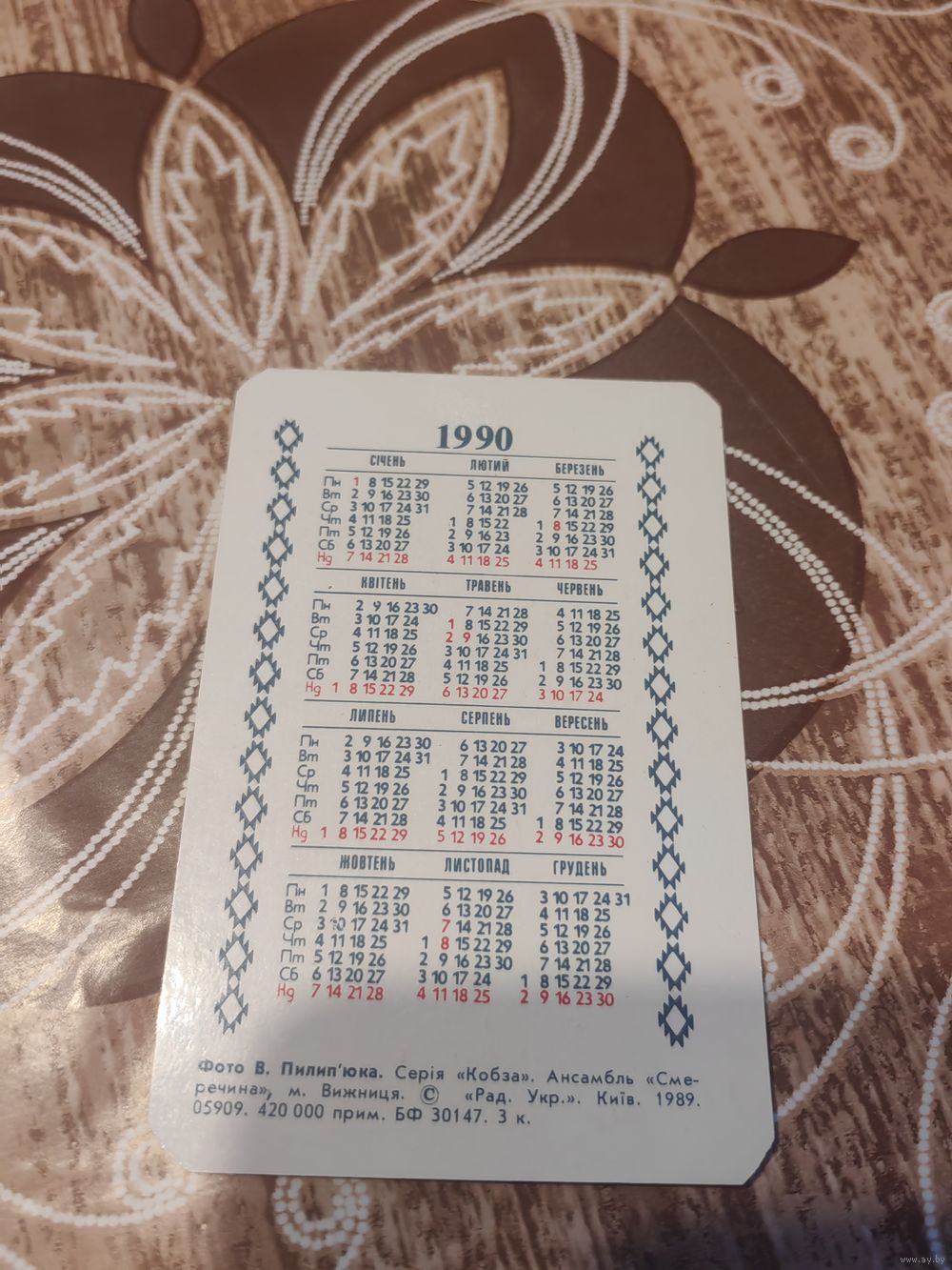 Календарик,артисты,украина,1990
