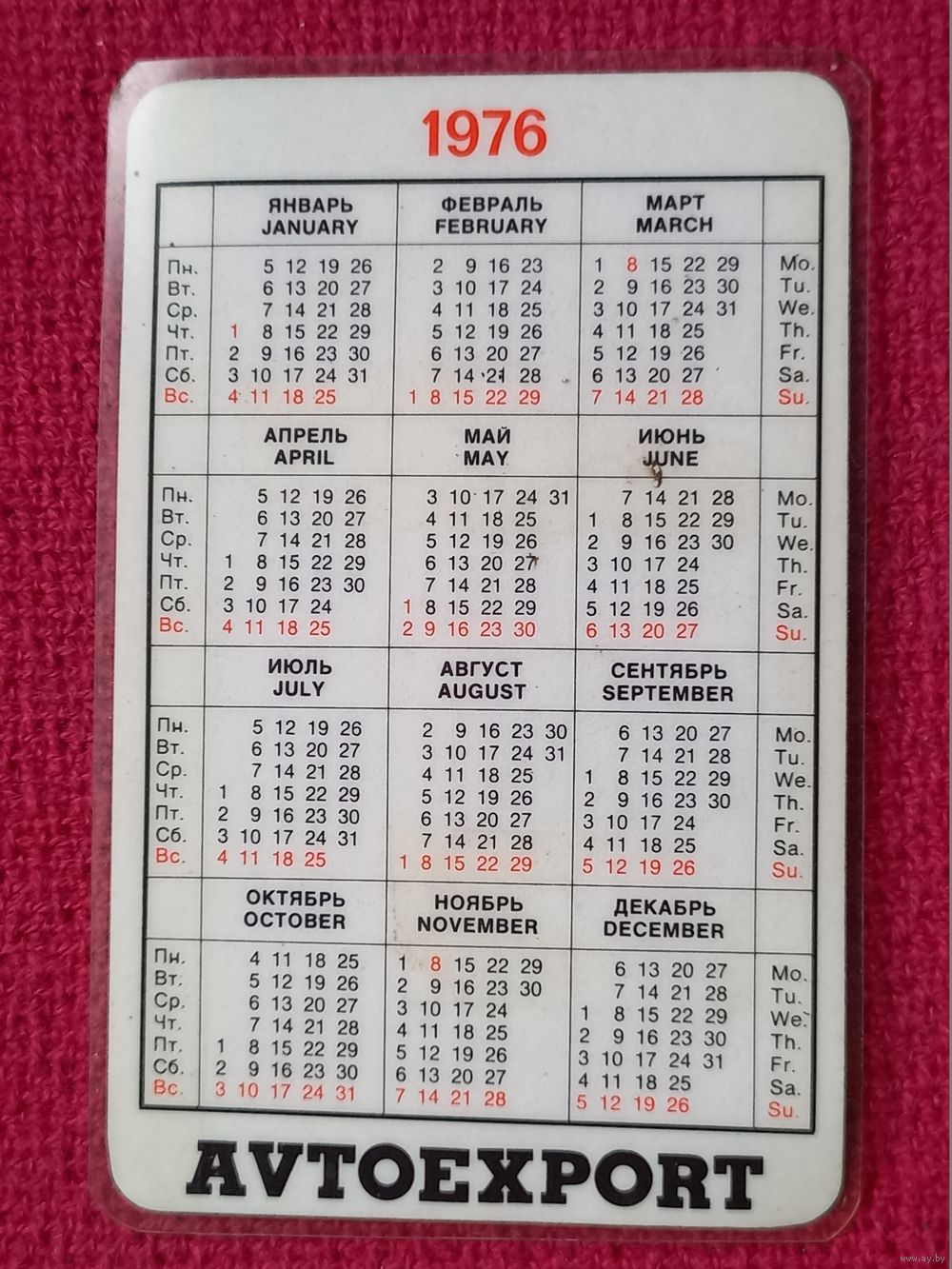 Календарик Автоэкспорт Лада, LADA-1500 S. 1976 г.