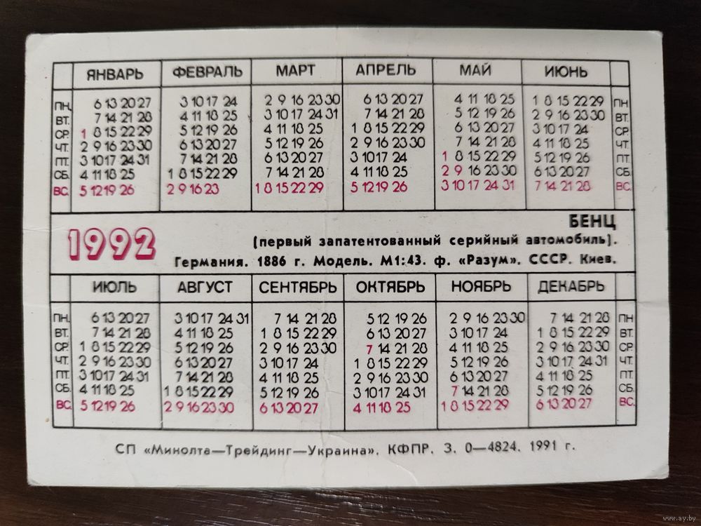 Календарик Автомобиль
