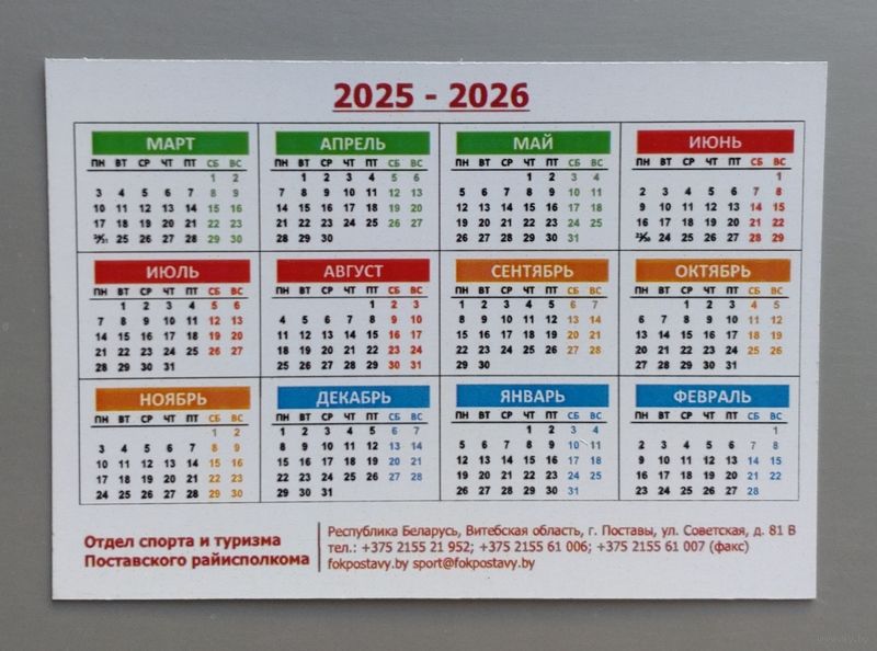 Календарик. Беларусь. г.Поставы (Витебская обл.). 2025.
