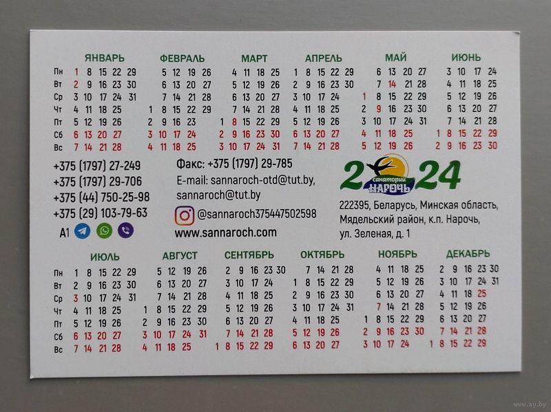 Календарик. Беларусь. Санаторий Нарочь. 2024.