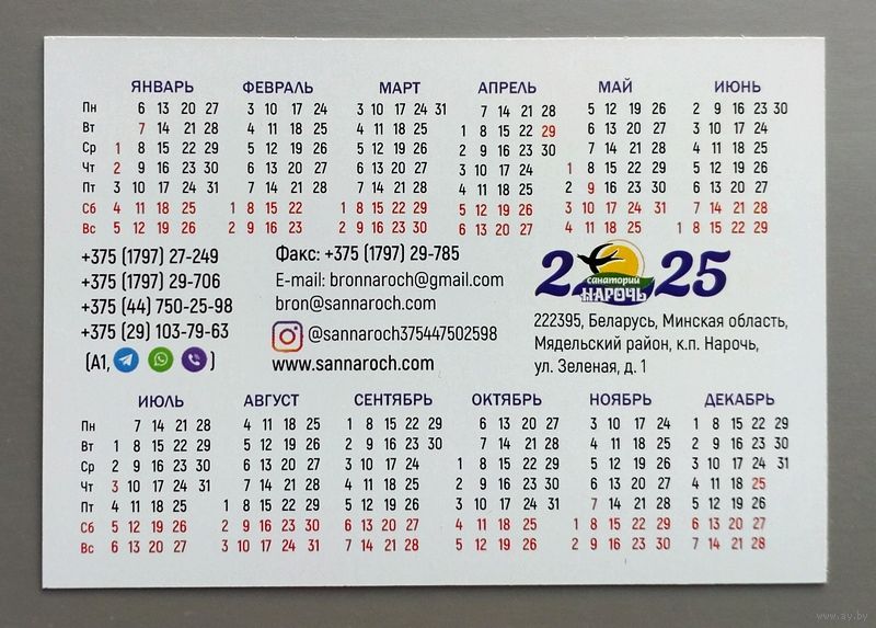 Календарик. Беларусь. Санаторий Нарочь. 2025.