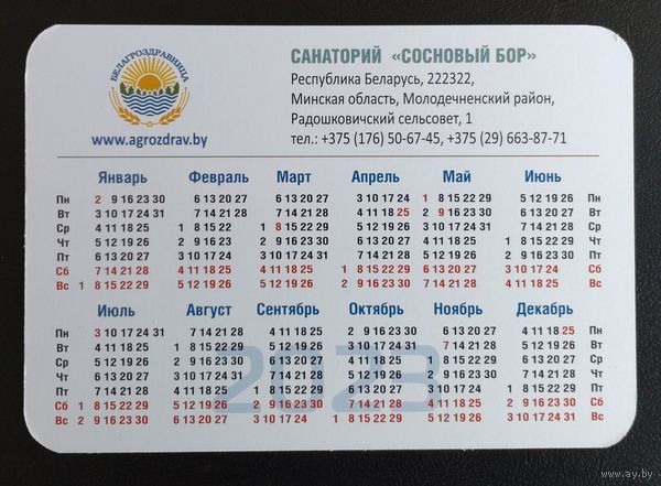 Календарик. Беларусь. Санаторий Сосновый Бор. 2023.